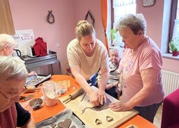 V Domově pro seniory sv. Jiří vrcholí přípravy na Velikonoce a tak se tento týden pekly velikonoční perníčky. Perníkové koření provonělo celou kuchyň, chodbu i další prostory Domova. Seniorky se střídaly ve válení těsta a vykrajování tvarů. Všechny měly z práce velkou radost a šlo jim to pěkně od ruky.