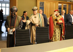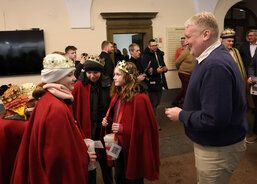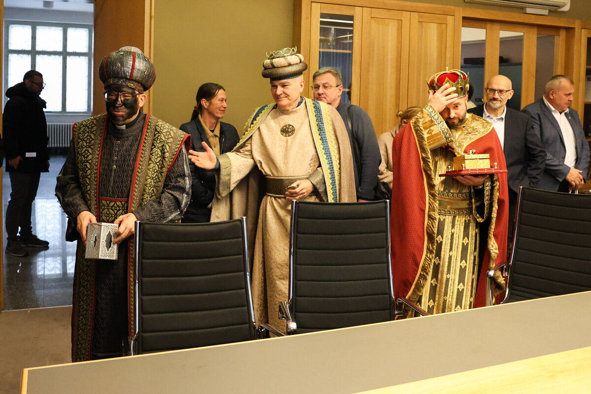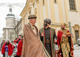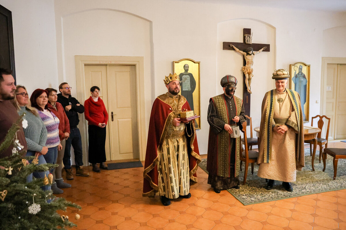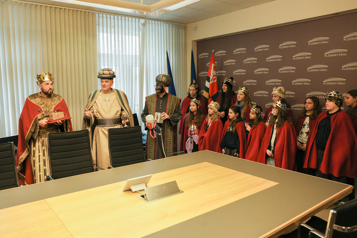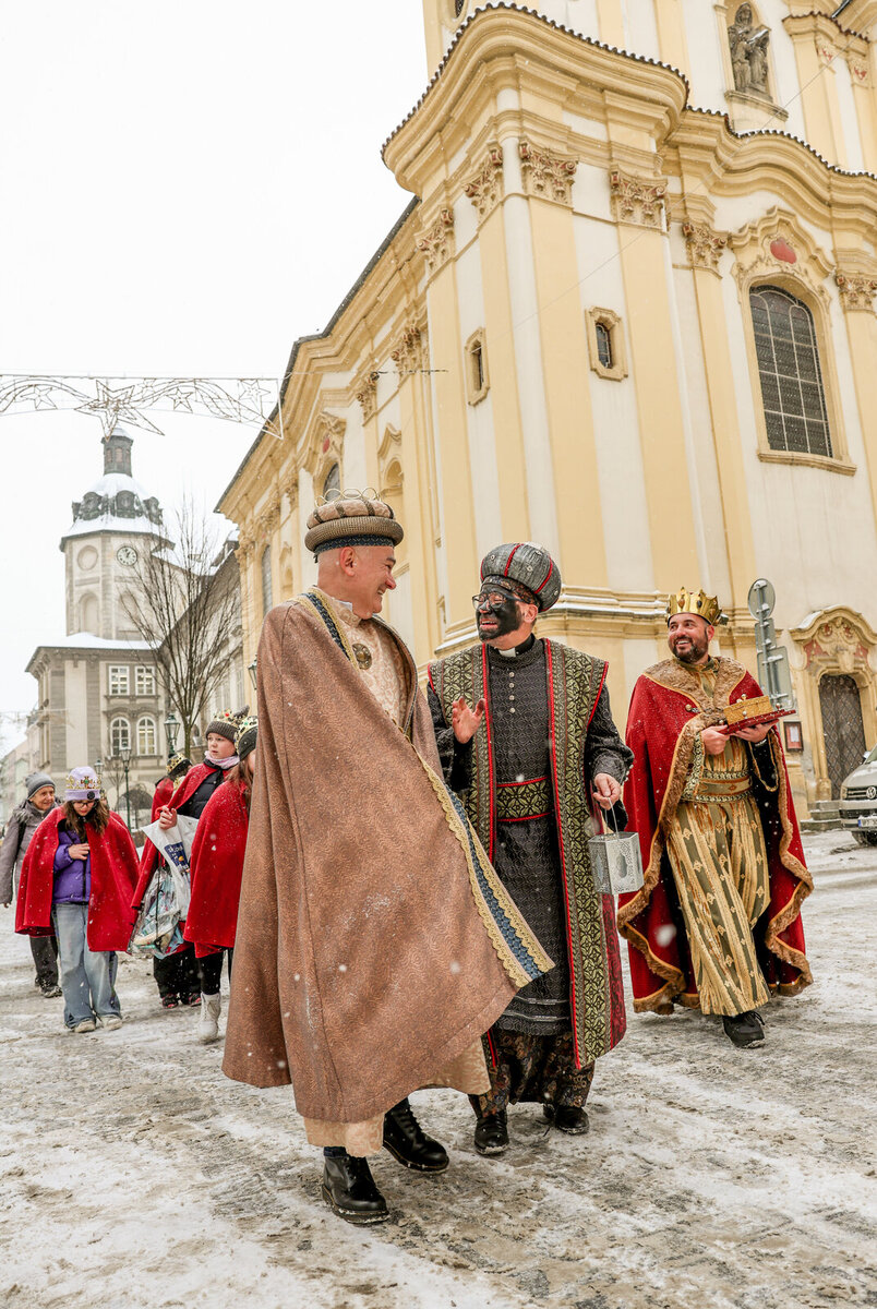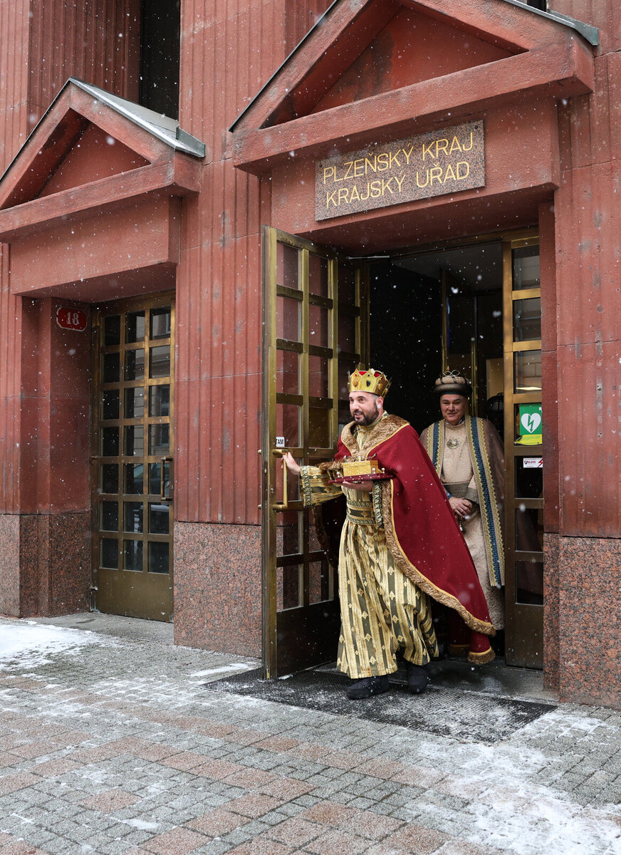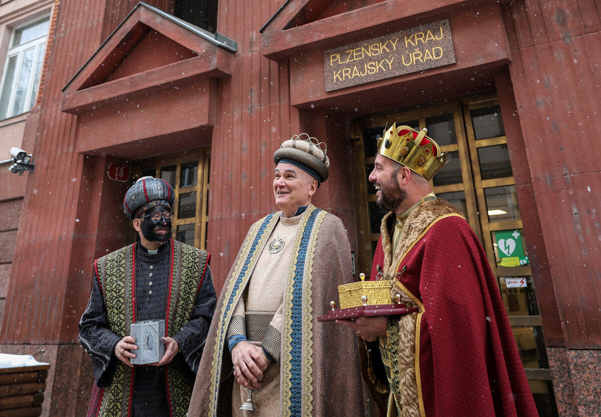 V roli Tří králů vyšli na společnou koledu hejtman Plzeňského kraje Kamal Farhan, primátor města Plzně Roman Zarzycký a plzeňský biskup Tomáš Holub. Písmena K+M+B totiž symbolizují nejen Kašpara, Melichara a Baltazara, ale v Plzni také Kraj, Město a Biskupství. Doprovázel je Dětský pěvecký sbor Jiřičky. Společně tak podpořili tradiční Tříkrálovou sbírku.