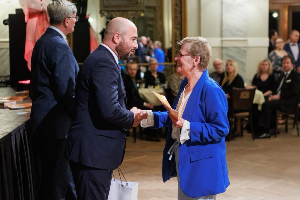 Yvetta Papoušková přebírá ocenění od primátora města Plzně Romana Zarzyckého