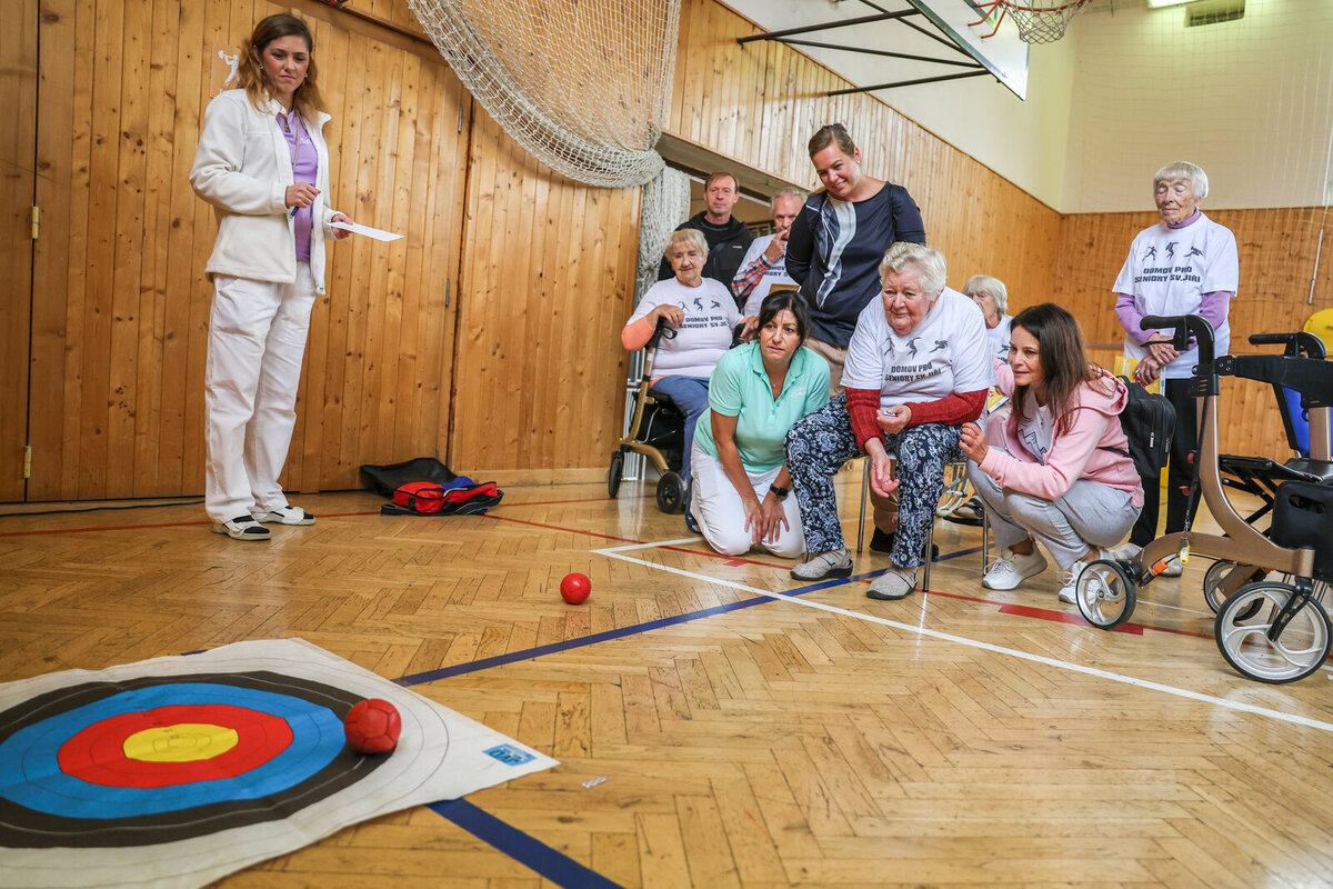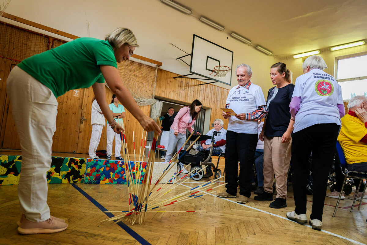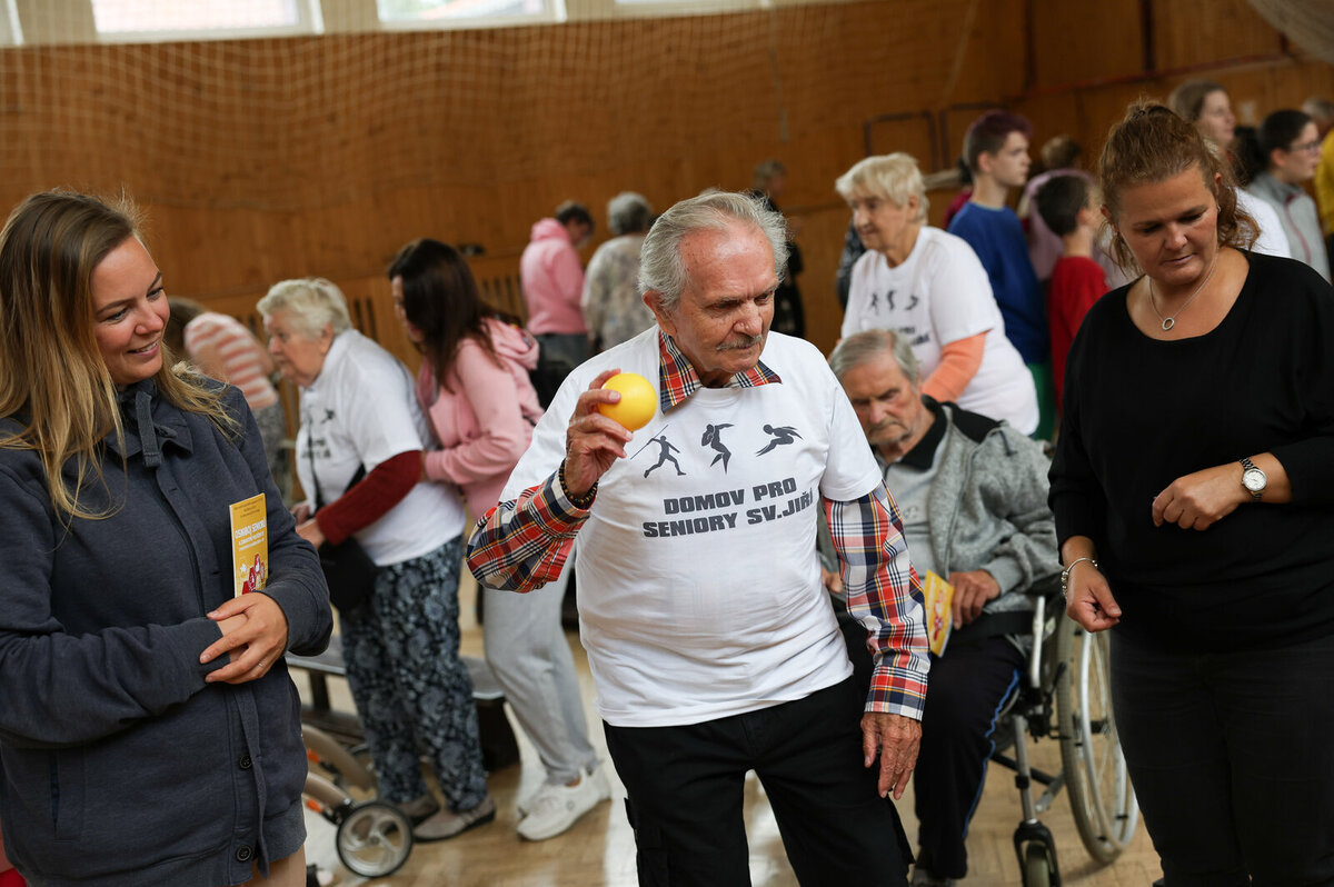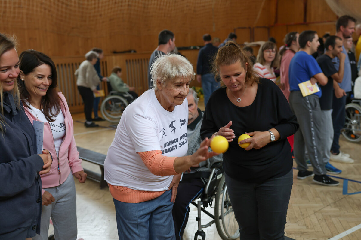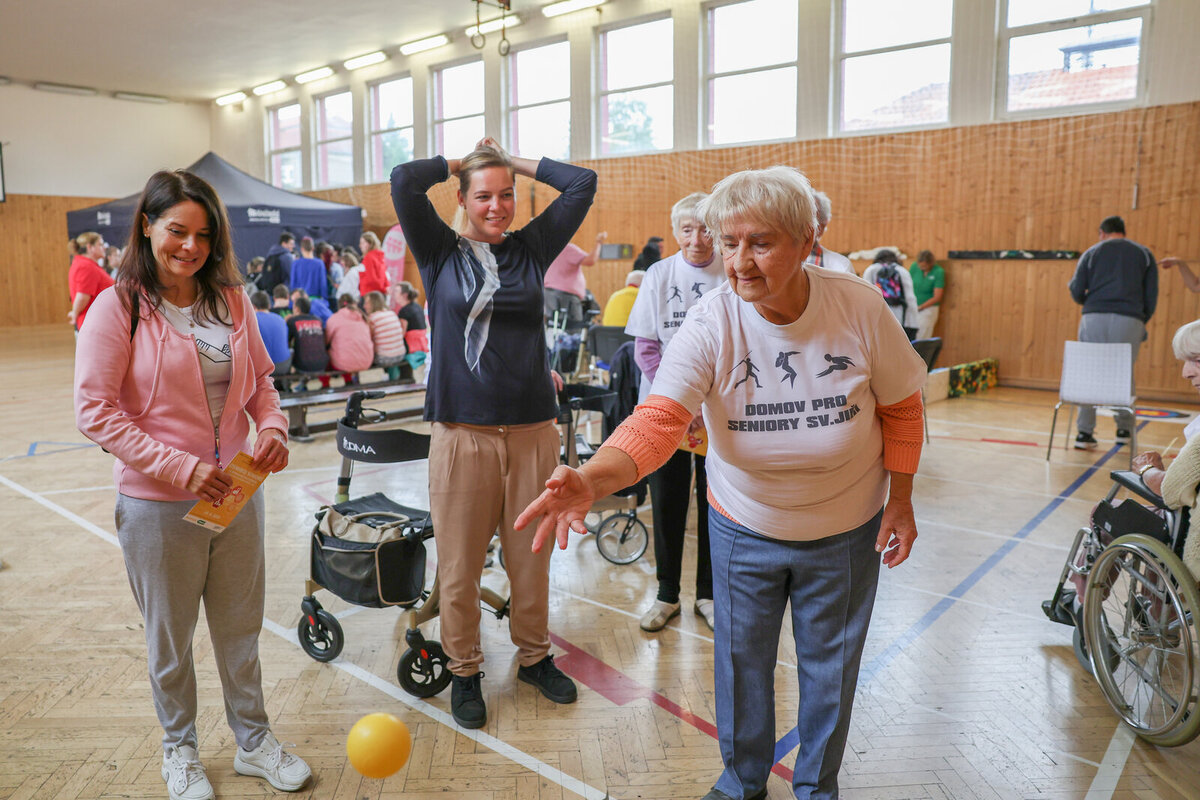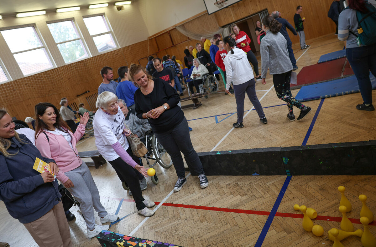 Sportovní klání se konalo v tělocvičně CPTS, na rozdíl od předchozích ročníků, které probíhaly venku. Letos však počasí tolik nepřálo, neboť se výrazně ochladilo. To však účastníkům nijak nevadilo a v tělocvičně přecházeli k jednotlivým sportovním stanovištím, kde jim po splnění každé disciplíny pořadatelé zapisovali body do soutěžní karty. Soutěžili v kuželkách, ping pongu, velkém mikádu, hodu na plechovky, hodu na koš, interaktivní videohře s mýdlovými bublinami a hře boccia, což je paralympijský sport podobný pétangue. Bylo vidět, že si navzájem drží palce, povzbuzovali se a tleskali. „Chtělo by to ještě více tréninku, například u kuželek,“ svěřila se soutěžící Marta Jiřincová, ale bylo vidět, že ji závody baví a nešetřila úsměvy, stejně jako její týmoví kolegové.
