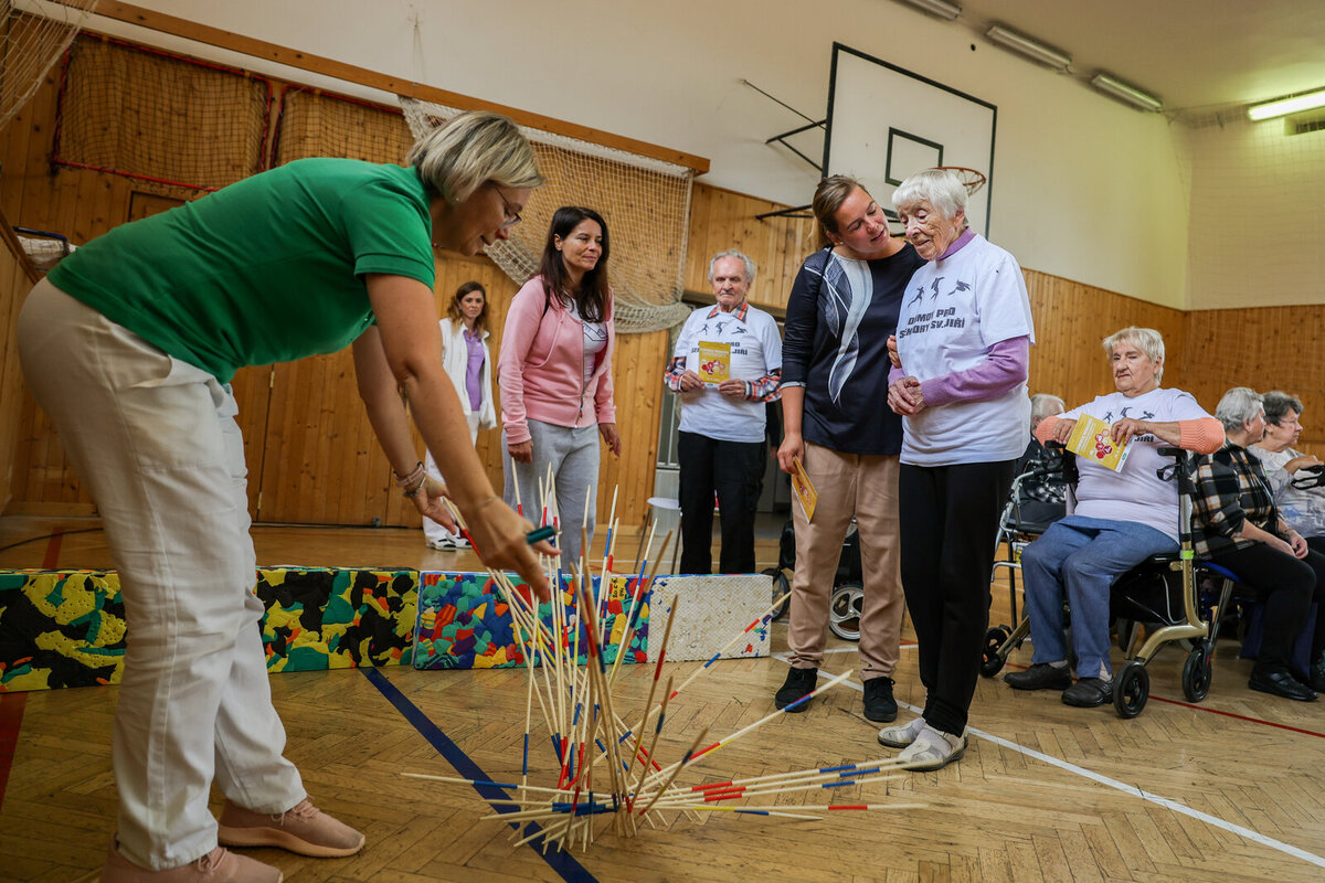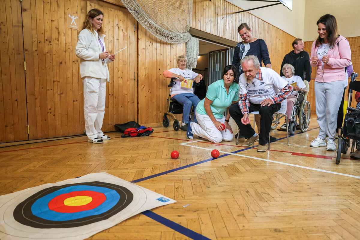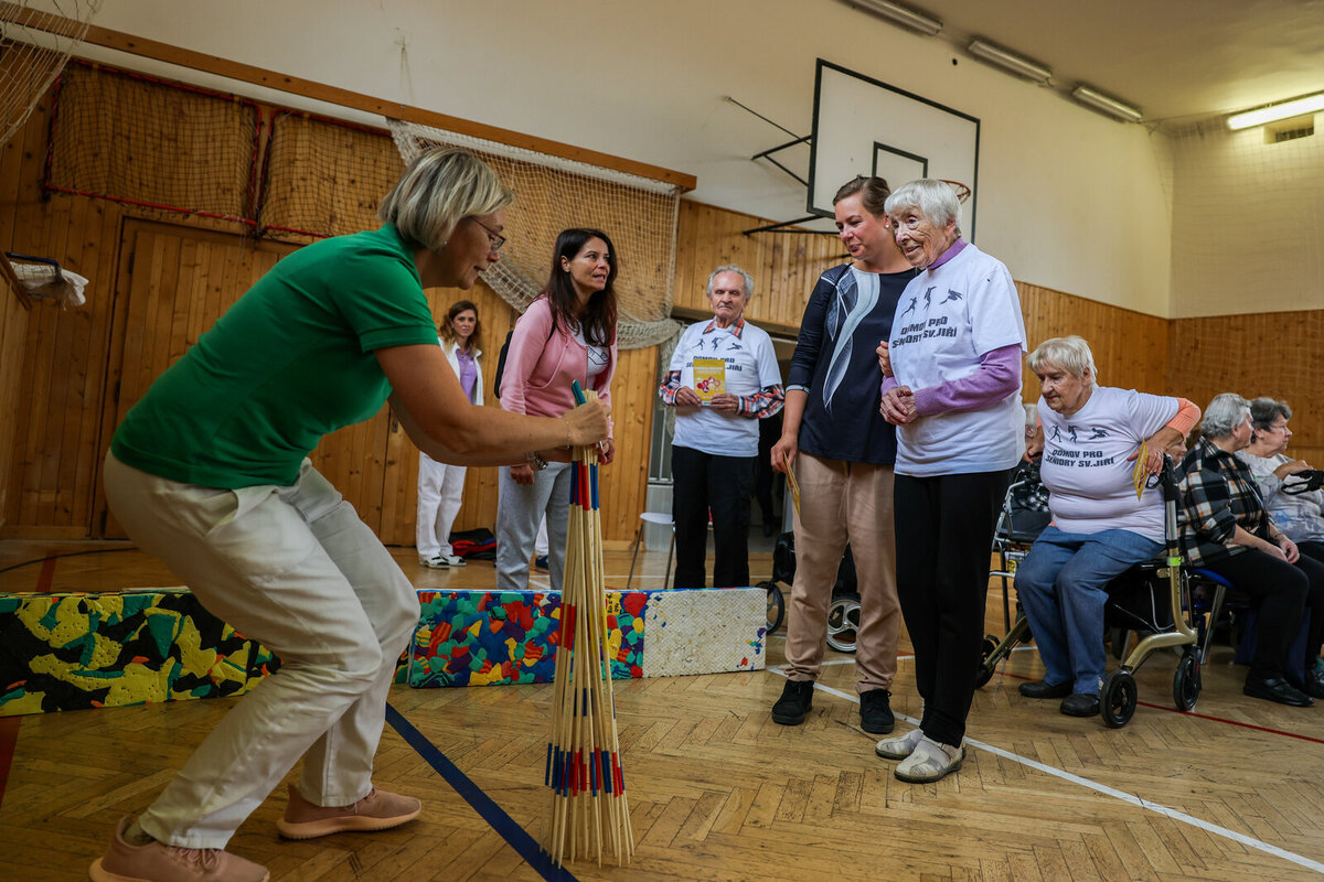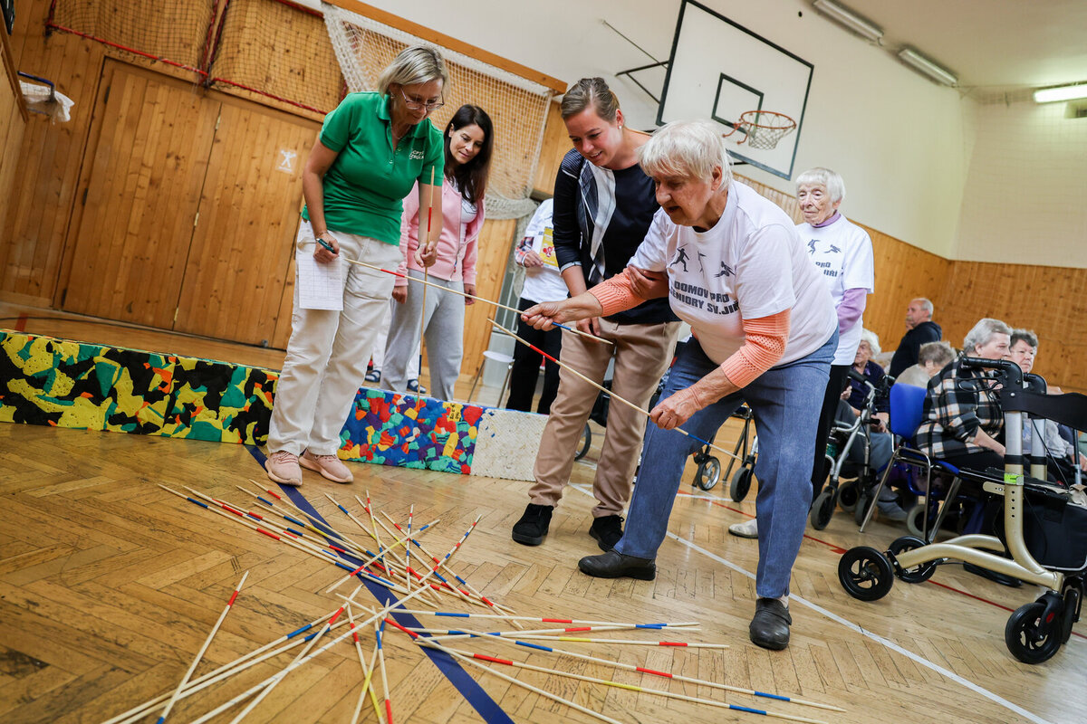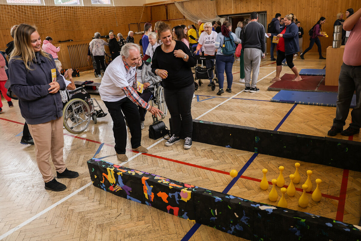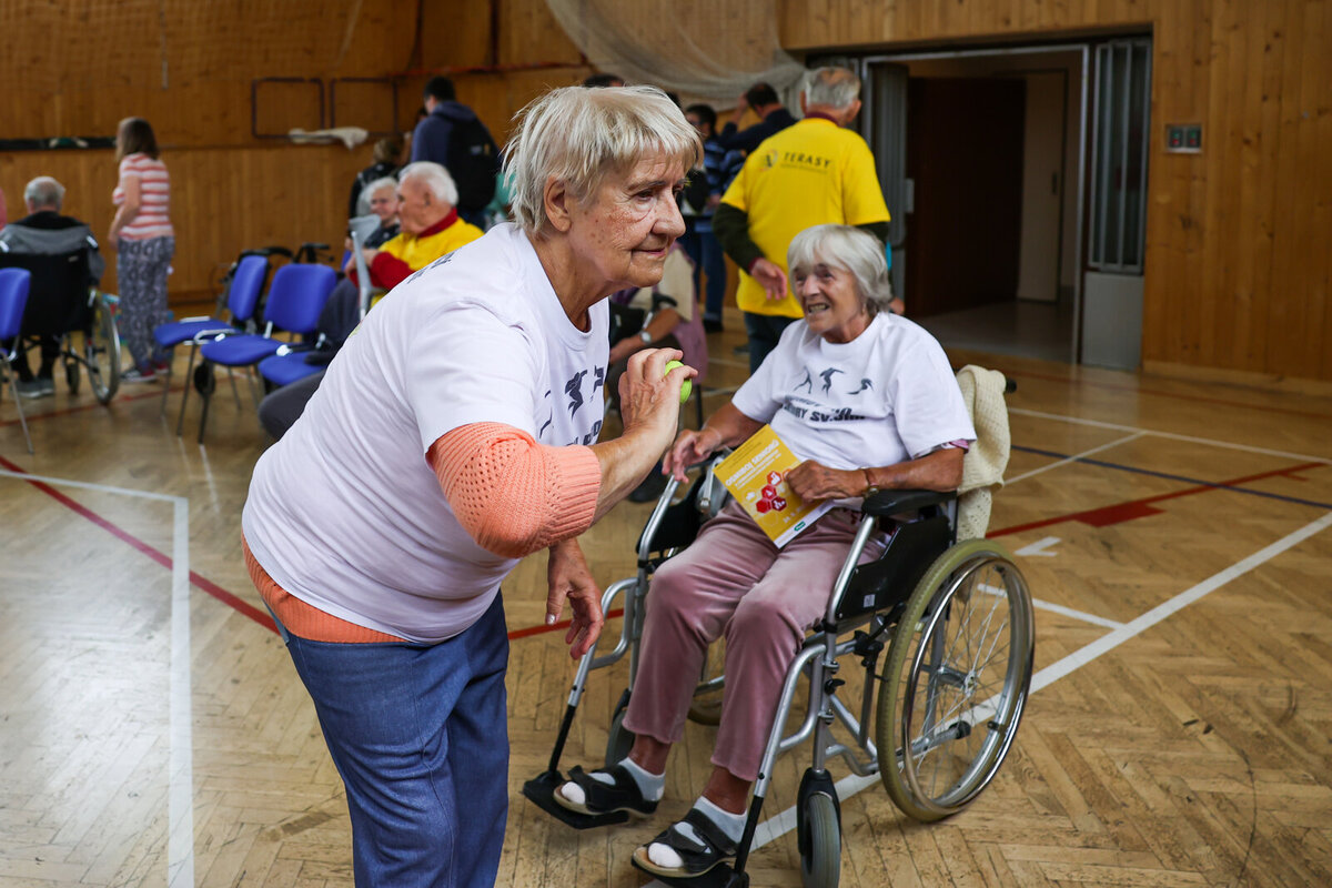 Sportovní klání se konalo v tělocvičně CPTS, na rozdíl od předchozích ročníků, které probíhaly venku. Letos však počasí tolik nepřálo, neboť se výrazně ochladilo. To však účastníkům nijak nevadilo a v tělocvičně přecházeli k jednotlivým sportovním stanovištím, kde jim po splnění každé disciplíny pořadatelé zapisovali body do soutěžní karty. Soutěžili v kuželkách, ping pongu, velkém mikádu, hodu na plechovky, hodu na koš, interaktivní videohře s mýdlovými bublinami a hře boccia, což je paralympijský sport podobný pétangue. Bylo vidět, že si navzájem drží palce, povzbuzovali se a tleskali. „Chtělo by to ještě více tréninku, například u kuželek,“ svěřila se soutěžící Marta Jiřincová, ale bylo vidět, že ji závody baví a nešetřila úsměvy, stejně jako její týmoví kolegové.