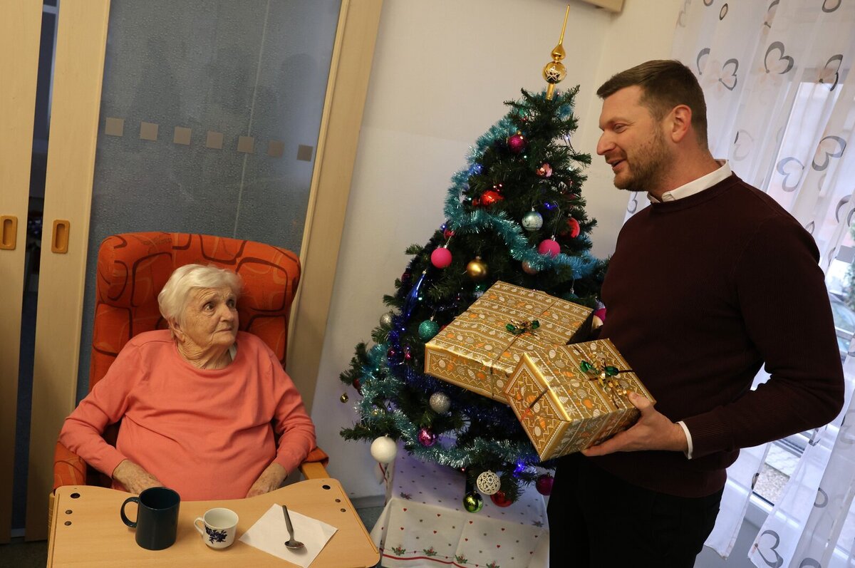 Primátor Plzně Roman Zarzycký navštívil seniory v Domově sv. Jiří. Popřál jim krásné Vánoce a pohovořil s nimi o tom, co by si přáli ve svém okolí zlepšit. Jeho dárkem byly konvice na nápoje pro každý pokoj seniorů v Domově. Primátor informoval přítomné o chystaných inovacích a novinkách v Plzni.