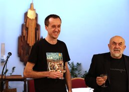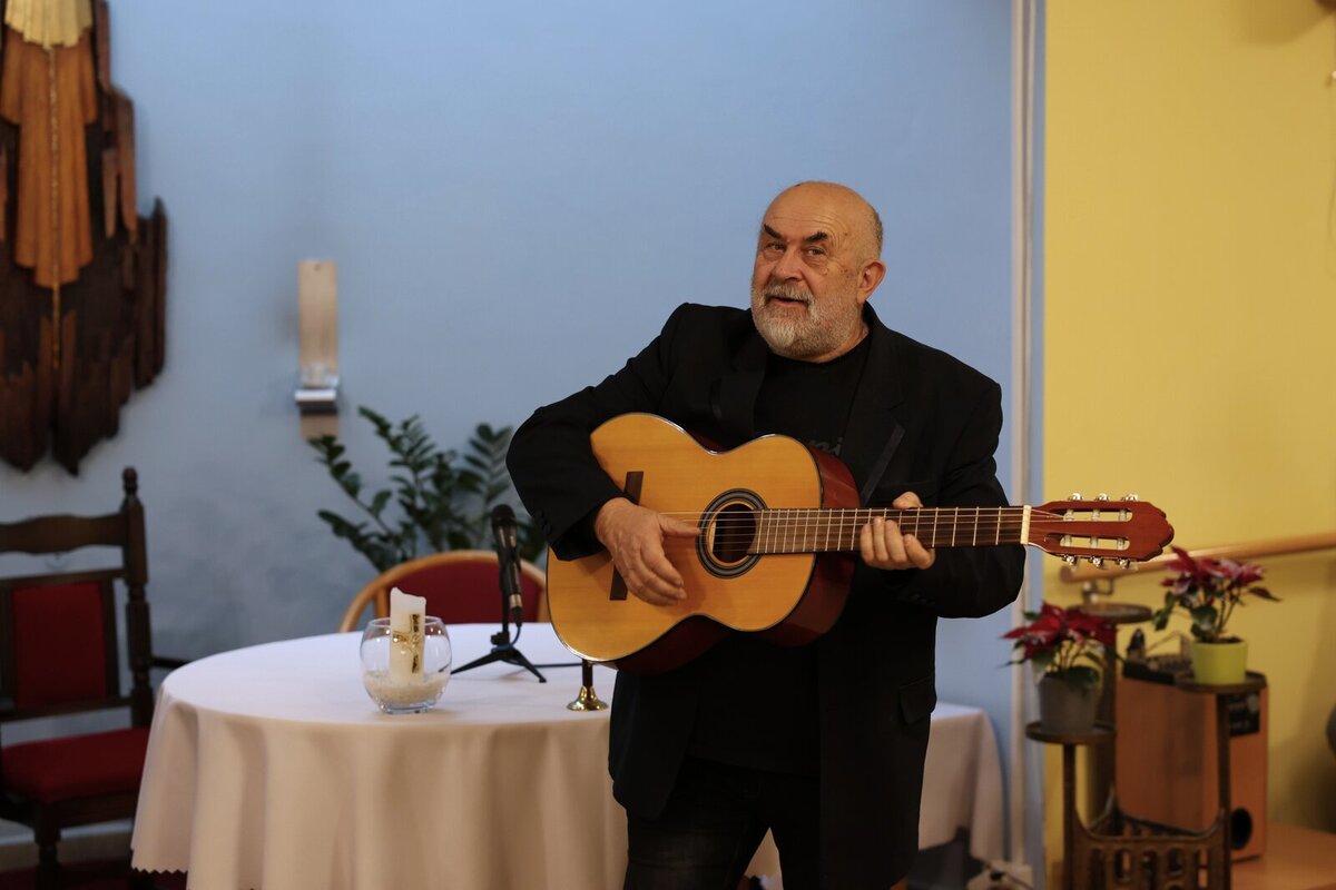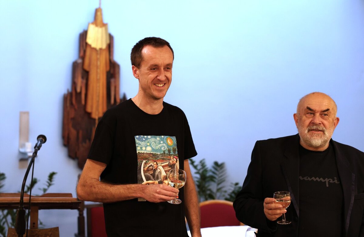 Stanislav Tyml se rovněž zúčastňuje setkání příznivců historických automobilů se svým vozem T600. Hostem vernisáže byl proto také majitel plzeňského Muzea dvoutaktů Pavel Křovák. Slavnostní vernisáž slovem provázel Jiří Hlobil, který zároveň zahrál na kytaru několik písní. Senioři z Domova sv. Jiří se k němu rádi přidali svým zpěvem a při poslechu hudby i vyprávění zavzpomínali na mládí.