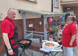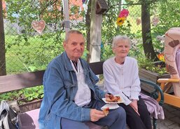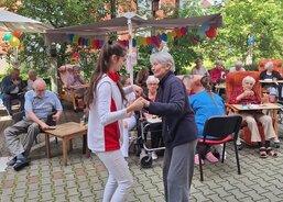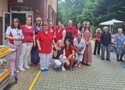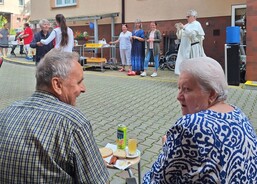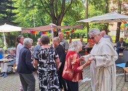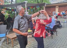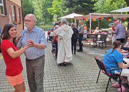Po mši svaté následovalo taneční odpoledne s občerstvením na zahradě pro klienty Domova i ostatní zúčastněné. K tanci a poslechu zahrálo oblíbené hudební duo Plzeňský expres Václava Auterského a Jitky Musilové. Jejich rytmické písně roztančily seniory, personál i přátele Domova.